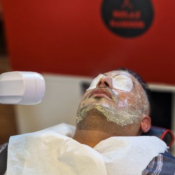 This service is characterized by defining and drawing the chin using the sharp blade, in addition to removing facial hair by waxing, and cleaning ear and nose hair for free.